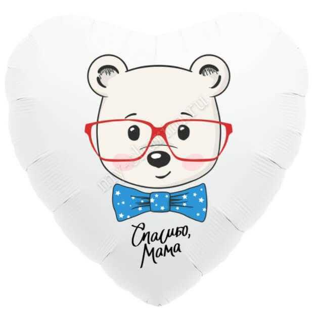 Сердце, Спасибо, Мама! (мишка), Белый, 46см